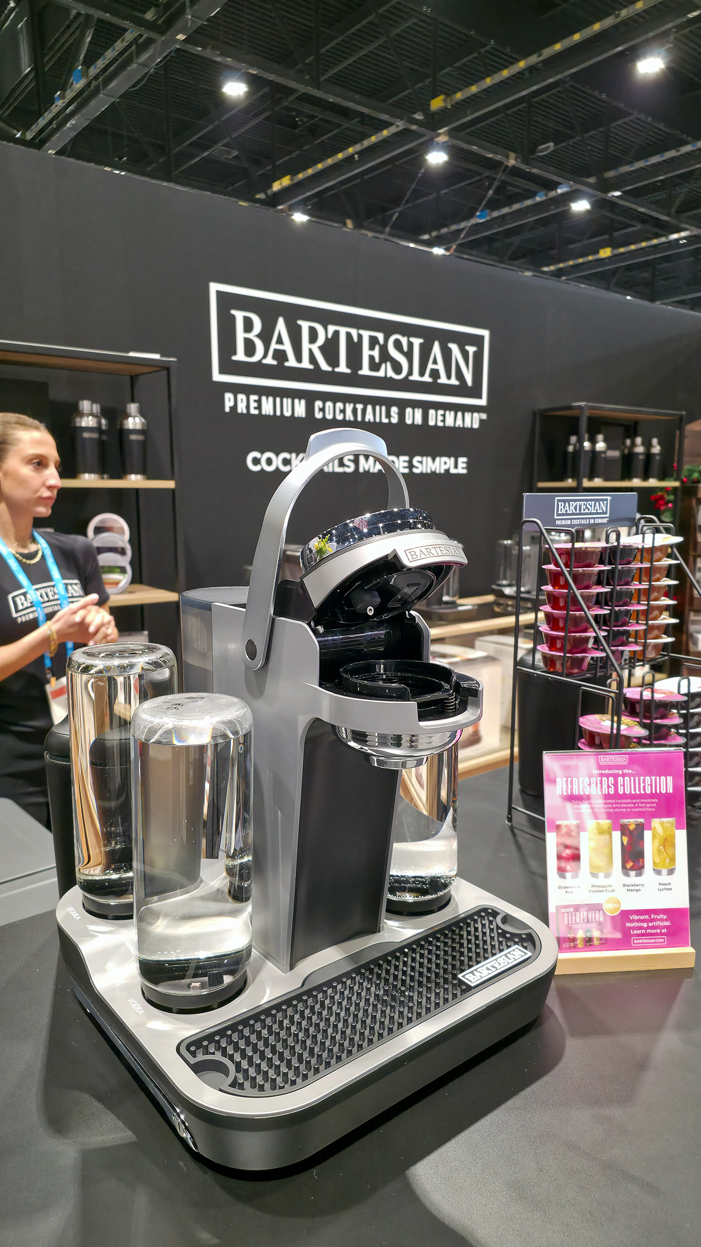 Na automatické výrobníky koktejlů jsme už narazili na světových veletrzích několikrát, ale tento nám přišel asi nejpromyšlenější. Jde totiž o první přístroj svého druhu, který kombinuje kapslový systém, přístroj a možnost použít jakýkoliv vlastní alkohol. Na výběr je přes 50 kapslí pro různé drinky od margarity přes old fashioned až po stále populárnější negroni. Stačí vložit kapsli a stisknout tlačítko – výrobník si odebere potřebný alkohol z jedné ze čtyř nasazených lahví. Uživatel si navíc může zvolit sílu nápoje od varianty mocktail až po double. Oplach po každé přípravě zajišťuje, že je každý koktejl čistý a není ovlivněn předchozí přípravou.