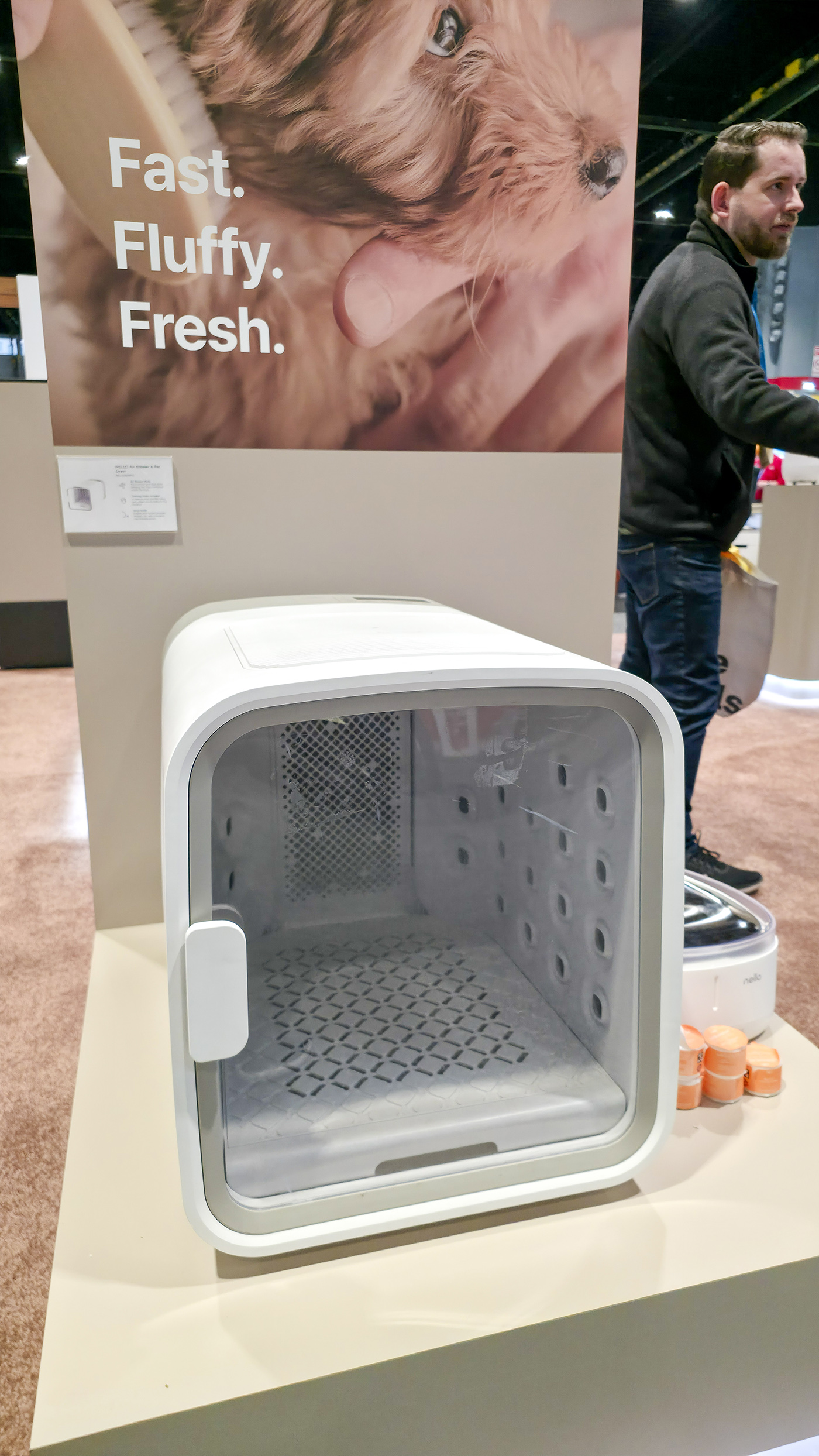 Korejská firma založená už v roce 1978 se vepsala na svém domácím trhu do povědomí především tlakovými rýžovary. Postupně ale rozšířila své portfolio a expandovala na vybrané zahraniční trhy včetně USA (do Evropy nikoliv). V její expozici jednoznačně vyčníval tento box určený k sušení srsti domácích mazlíčků. Sekundární funkcí je mód pro čištění zvířat od prachu a dalších nečistot, se kterými mohou přijít domů třeba z procházky venku.