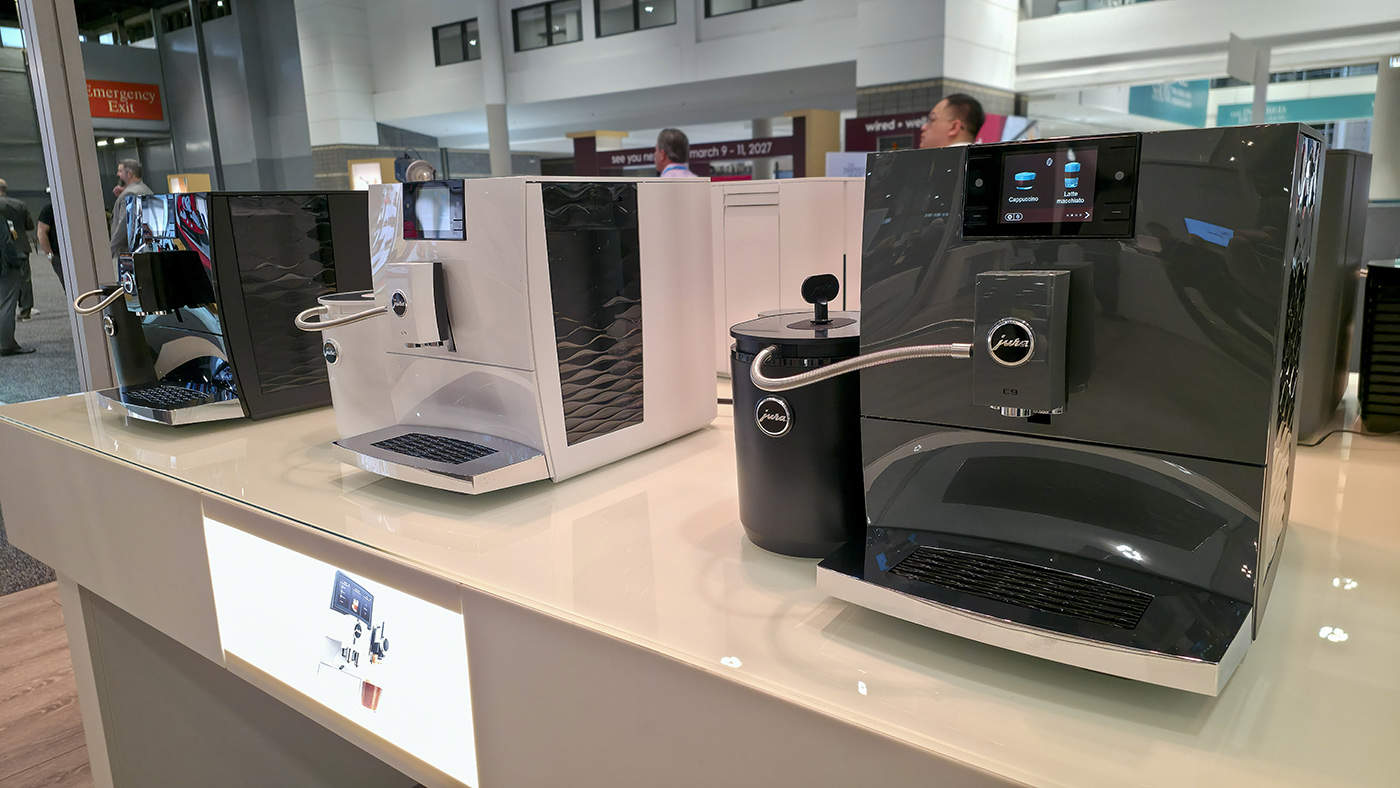 Hvězdou stánku švýcarské firmy byl nový model kávovaru C9. A to i proto, že získal prestižní ocenění gia v kategorii elektrických pomocníků do kuchyně. Cenově dostupnější plnoautomatický stroj připraví 17 nápojů a vedle tradiční extrakce disponuje také takzvanou metodou Light Brew, s níž přišla JURA poměrně nedávno. Kávovar extrahuje kávu v tomto případě pomocí vody o teplotě 60 °C. Na veletrhu jsme si všimli vedle bílého a černého provedení ještě verze Piano Inox. Ta ale nebude na českém trhu v prodeji.