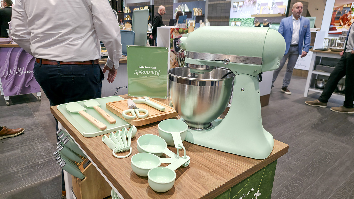 Již tradičně se na The Inspired Home Show jdeme podívat do expozice legendární značky KitchenAid, abychom si osobně prohlédli poměrně nedávno oznámenou speciální barvu pro daný rok. Kromě robotu je v takzvaném „spearmint“ provedení dostupné i rozličné kuchyňské náčiní.