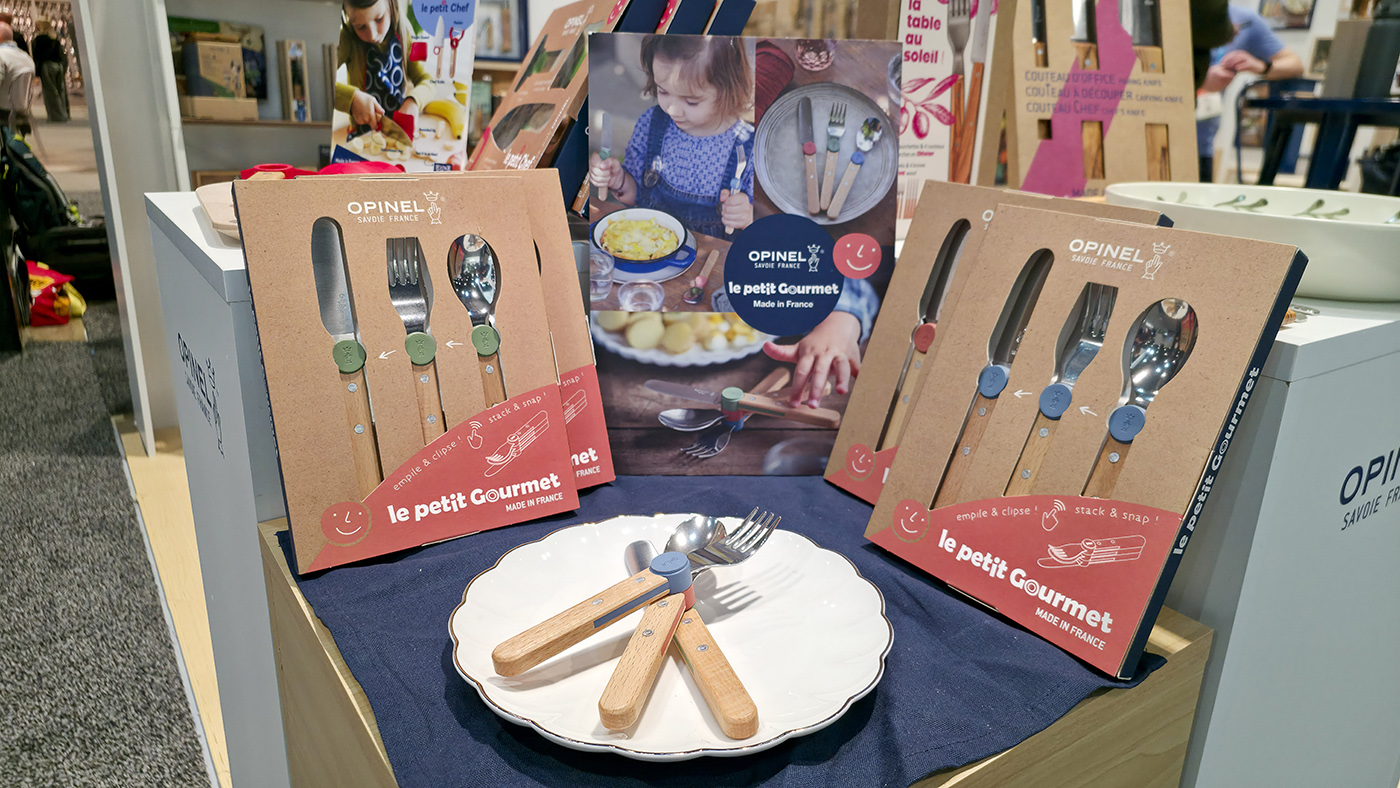 Slavný francouzský výrobce nožů rozšířil dětskou řadu produktů o třídílný set Le Petit Gourmet, určený pro dítka od 10 měsíců do cca 5 let. Sada obsahuje nůž, vidličku a lžíci z nerezové oceli s rukojeťmi z bukového dřeva s certifikací PEFC. Bezpečný nůž se zaoblenou špičkou pomáhá rozvíjet motoriku při krájení měkčích jídel. Součástí balení je i praktický klip z recyklovaného plastu.