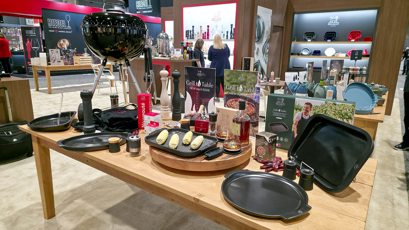 V „outdoorové“ řadě francouzské značky přibyl nově speciální pizza kámen, který odolá extrémním teplotám i jejich výkyvům. Je vhodný pro trouby i všechny typy grilů, přičemž díky zvýšenému okraji a ergonomickým madlům usnadňuje manipulaci. Kromě pizzy na něm připravíte také maso, zeleninu či dezerty. Další novinkou, kterou jsme na místě zaznamenali, je řada produktů Northern Lights v pastelových tónech. Obsahuje keramické pekáčky a formy, příslušenství pro servírování vína i ikonické mlýnky Peugeot.