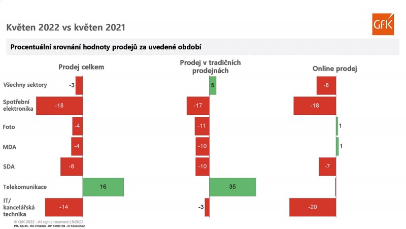 Data GfK za měsíc květen odhalují, že meziroční srovnání měsíců, kde už trh nebyl významně ovlivněn lockdownem, má výrazně větší výpovědní hodnotu. Čísla pak jasně ukazují postcovidové ochlazení trhu s technickým spotřebním zbožím.