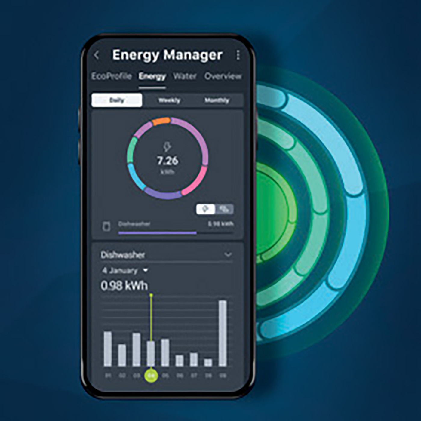 Chytrá aplikace pro vzdálené ovládání myčky, sledování spotřeby, stahování programů a přizpůsobení nastavení podle uživatelských preferencí.
