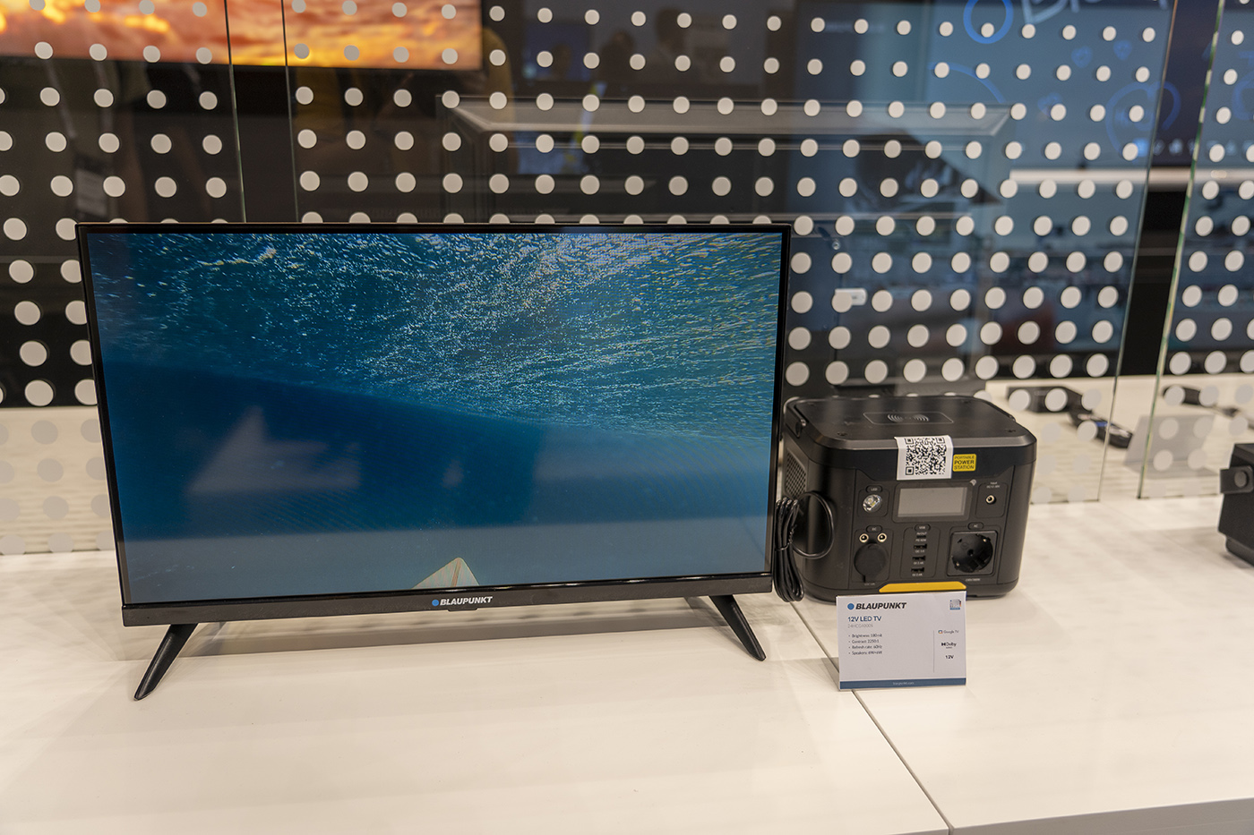 Co nás na stánku ještě zaujalo, byla 12voltová televize, kterou lze napájet přímo z autozapalovače. Jedná se o perfektní řešení pro cestovatele v obytných vozech.