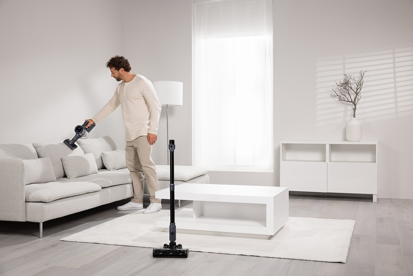Všechny modely nové řady jsou pak vybaveny funkcí Park & Chill, která umožňuje vysavač kdykoliv bezpečně postavit do vertikální polohy bez nutnosti opírání o zeď či nábytek. To oceníte při krátkých pauzách v úklidu i při skladování. K flexibilitě přispívá také provedení 2 v 1 s odnímatelnou ruční jednotkou, teleskopická trubice a LED osvětlení hubice.