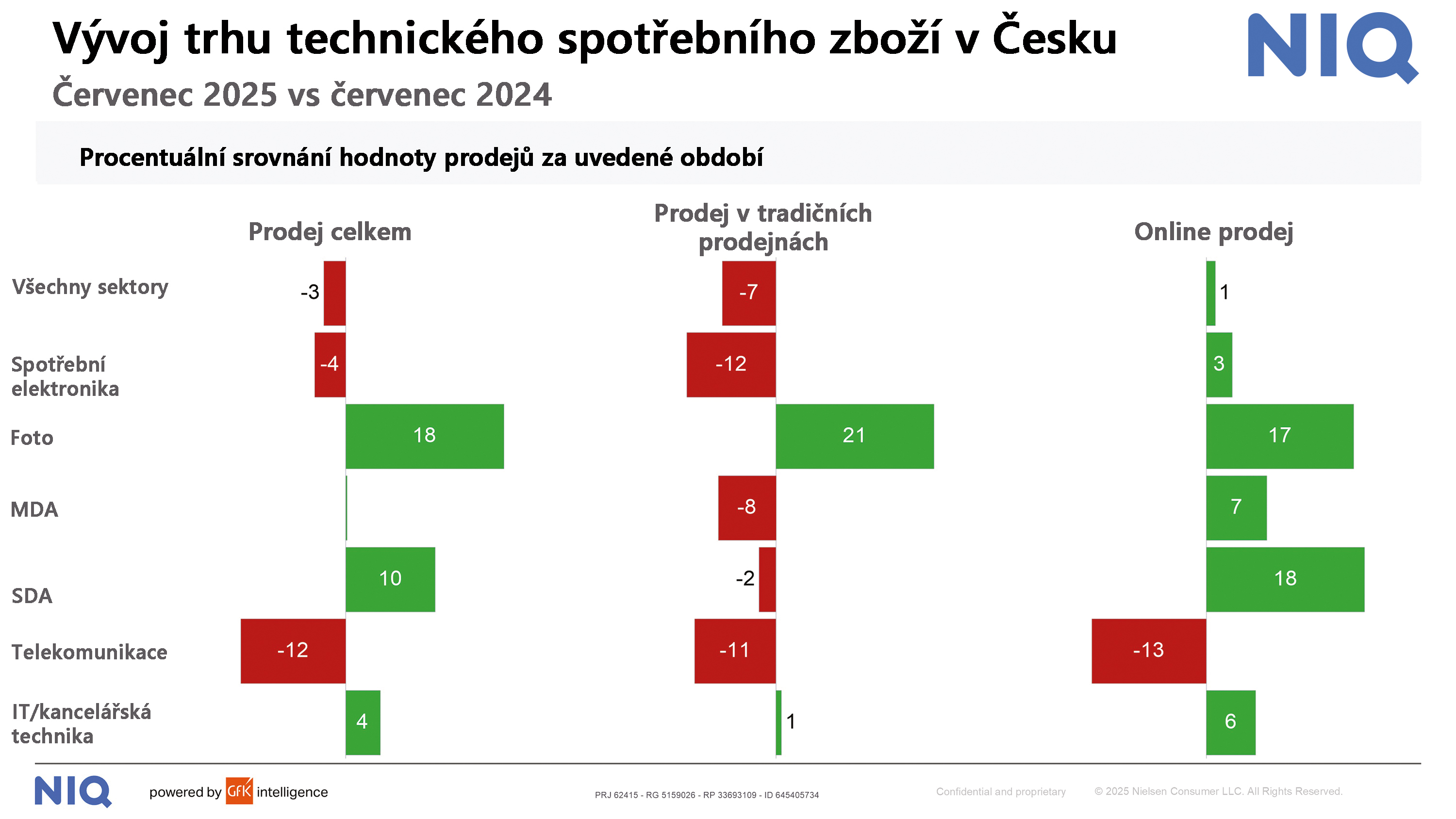Zjevné je také to, že výrazně horší výsledky mají kamenné prodejny. Naproti tomu internet celková čísla zlepšuje, protože online prodej sám o sobě vykazuje ve většině kategorií za oba měsíce růst.