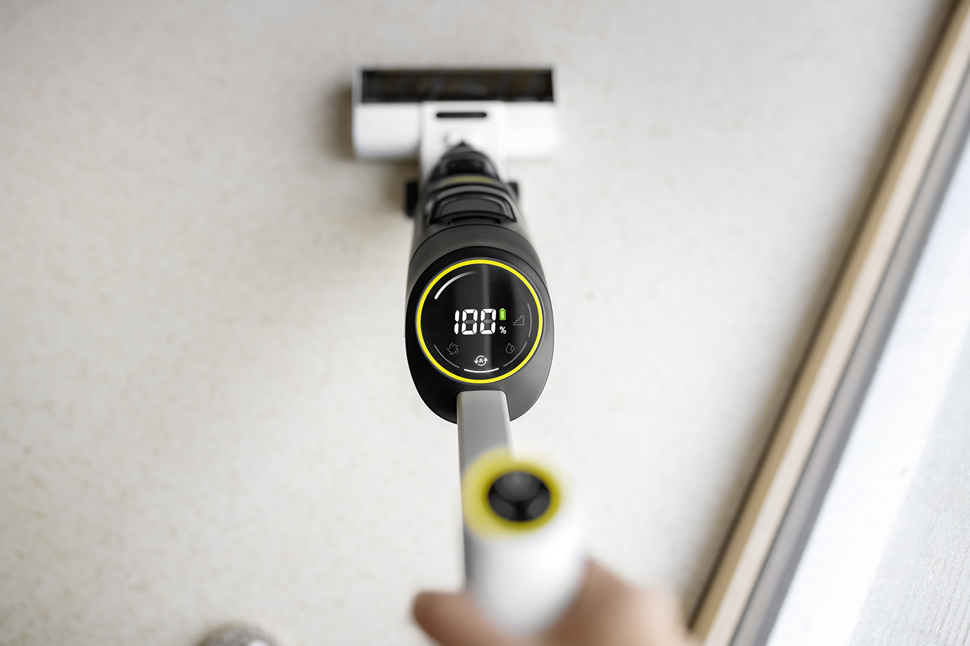 Inovace se neomezují jen na samotné čisticí režimy. Kärcher FCV 4 myslí i na další detaily, které vám usnadní život. Mimořádně užitečným prvkem je technologie Vision!Clean. Na velkém a přehledném LED displeji s úhlopříčkou 3,2 palce vidíte na první pohled všechny podstatné informace, jako je stav baterie, zvolený režim či úroveň hladiny v nádržkách na vodu. Už se vám tak nestane, že byste omylem pokračovali v úklidu s prázdnou nádobou nebo naopak s plnou nádržkou na špinavou vodu. Nechybí ani inteligentní indikace hladiny s ochranou proti přetečení a automatickým vypnutím.