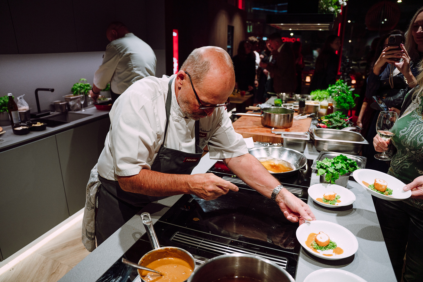 Že je pro Miele klíčové propojení špičkové techniky s reálným zážitkem, potvrdil i doprovodný program. O gastronomickou stránku večera se postarala skutečná kuchařská elita – slavní šéfkuchaři Zdeněk Pohlreich a Tomáš Reger. Ti přímo na místě připravovali pestré menu, které mohli ochutnat všichni přítomní hosté, a demonstrovali tak schopnosti spotřebičů v praxi.