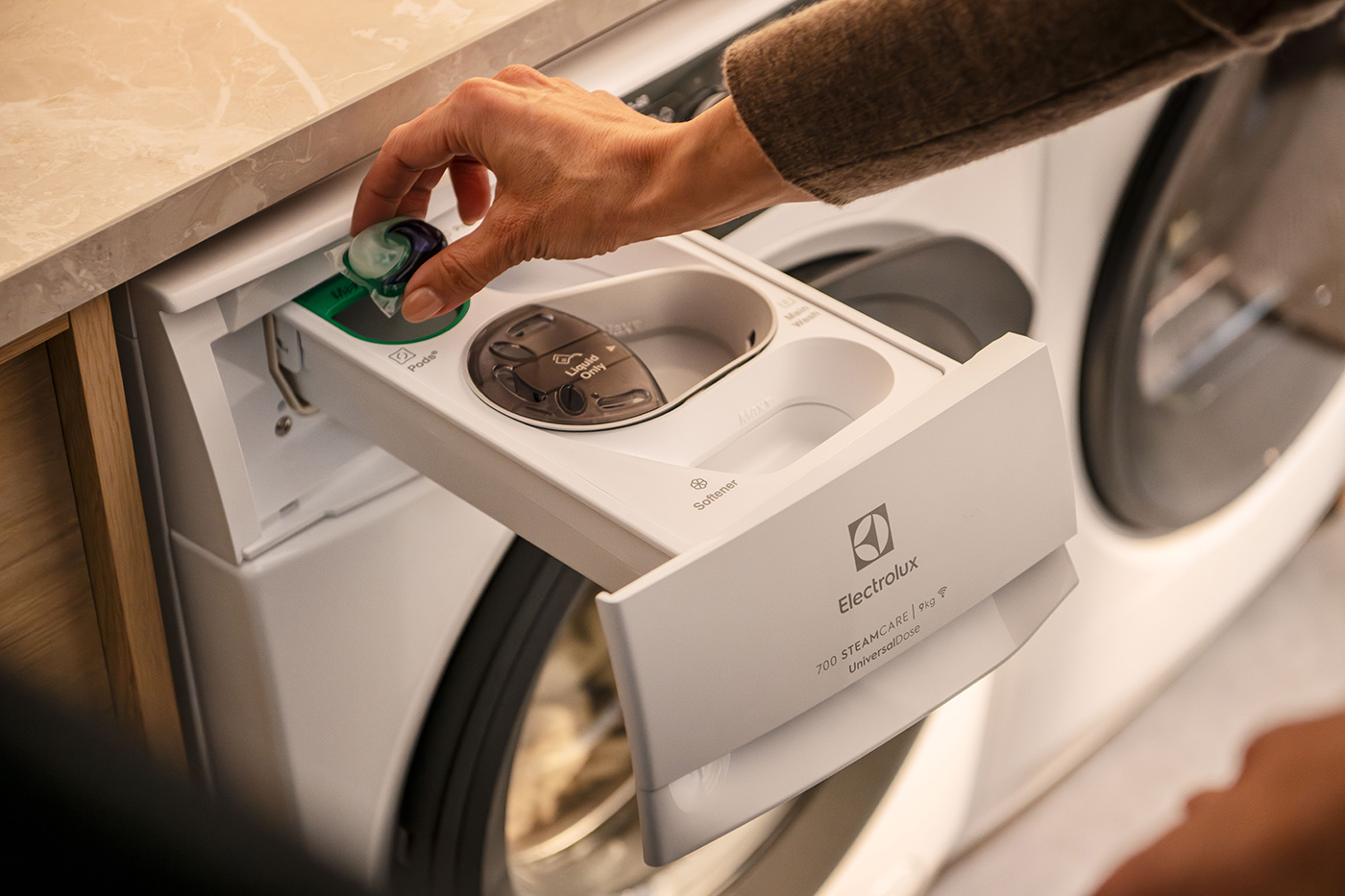 - 700 SteamCare – i základní modely praček se sušičkou nabízejí možnost parního osvěžení oblečení za pouhých 25 minut při úspoře 96 % vody ve srovnání s použitím pracího programu. Technologie DualCare umožňuje prát a sušit vlněné a outdoorové oblečení. Potvrzuje to i certifikát Woolmark Blue. Dále stojí za pozornost systém SensiCare+, buben Care a u vybraných modelů ovládání SmartSelect. Uživatelé si také mohou vybrat, zda dají přednost automatickému dávkování detergentů AutoDose, nebo zvolí zásuvku UniversalDose.