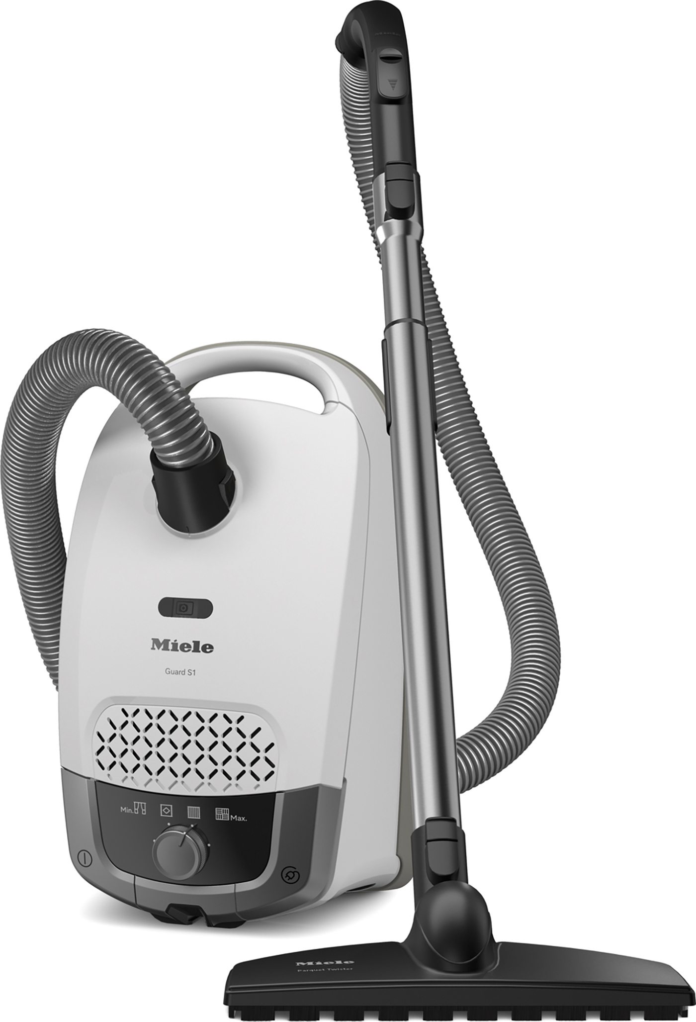 Nová vlajková loď nabídky disponuje vylepšeními, jakých se klasické podlahové vysavače na trhu dosud nedočkaly. Už při prvním seznámení upoutá pozornost velký barevný LCD displej, který v závislosti na modelu zobrazuje dokonce procentuální naplnění sáčku a stav vzduchového filtru. Na displeji můžete volit ze 4 stupňů výkonu (závěsy, čalouněný nábytek, koberce, tvrdé podlahy) nebo nechat vše na samotném vysavači a automatickém režimu, kdy se výkon sám dynamicky mění podle typu vysávaného povrchu. U podlahové hubice také nehledejte tradiční přepínání – hubice je univerzální pro všechny povrchy a žádný přepínač již nepotřebuje. Přímo v těle vysavače je pak skryto a snadno přístupné kombinované příslušenství v podobě štěrbinové hubice a prachové hubice. S 62 dB(A) je model Guard L1 nejtišším vysavačem značky Miele, jaký byl kdy uveden na trh. A zapomenout nesmíme ani na možnost propojení vysavače s chytrým telefonem. Aplikace Miele vás například upozorní na nutnost vyměnit sáček nebo filtr.