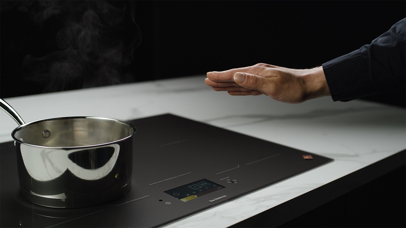De Dietrich však nemyslí jen na propojení zmíněných spotřebičů. Nové indukční desky nabízejí i další špičkové funkce, které reflektují potřeby moderní kuchyně. Patří mezi ně například variabilní varná plocha Horizone, která poskytuje maximální volnost při vaření. Tato zóna dokáže rozpoznat velikost a polohu nádobí a přizpůsobit se mu, ať už používáte velký pekáč, grilovací desku, nebo několik menších hrnců najednou. Vybrané modely varných desek pak lze ovládat gesty. Nejenže si při vaření nezašpiníte odsavač, navíc se nemusíte ani dotýkat ovládacího panelu desky.
