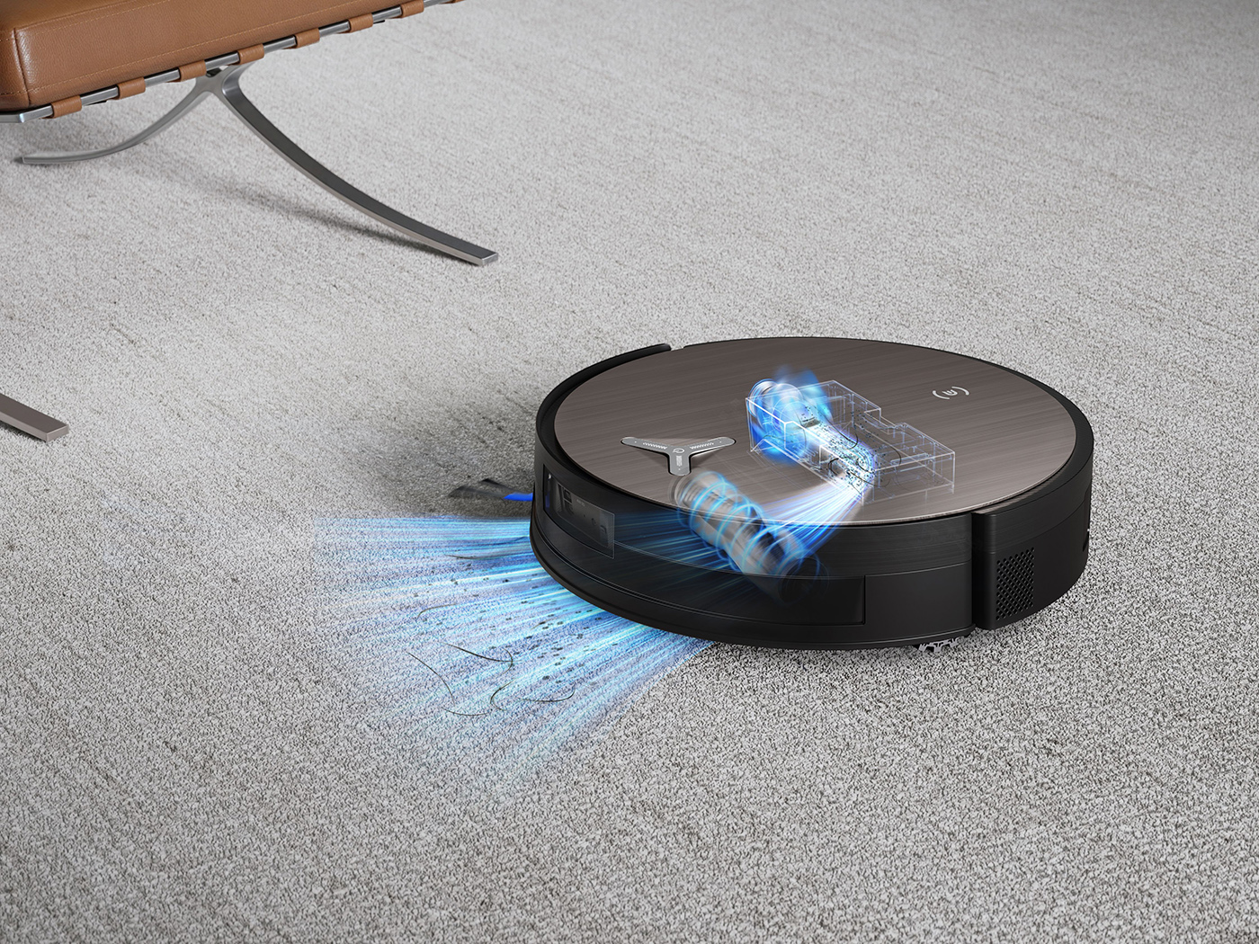 Robot se také pyšní bezkonkurenční navigací a vyhýbáním se překážkám. Nový systém AIVI® 3D 3.0 využívá pokročilý Vision-Language Model (VLM), který mu umožňuje rozpoznat a sledovat miliony různých objektů, nejen desítky předem naučených. VLM analyzuje obrazy prostředí a přímo detekuje obrysy všech překážek. To robotu umožňuje čistit těsně kolem nich, aniž by je z dálky obcházel. Tím se eliminuje nutnost vyhýbání se a je dosaženo maximálního pokrytí úklidové plochy.