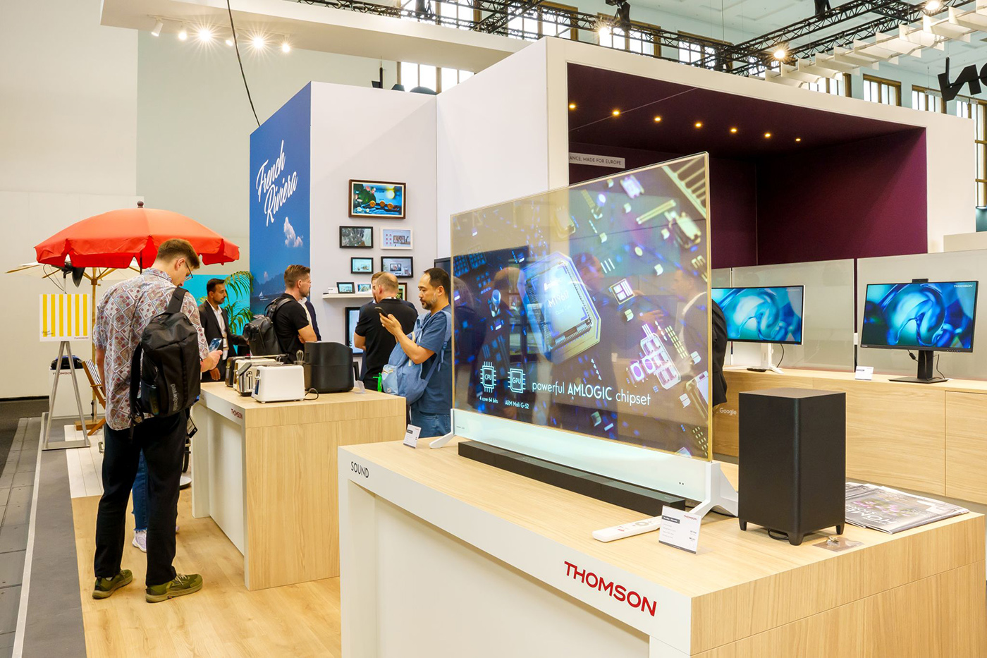 U značky Thomson, která se aktivně vrací nejen na evropské trhy a uspořádala letos na jaře ve Vídni velkou prezentaci, přitahovala největší pozornost průhledná televize Lucid OLED. A to i proto, že je 10× levnější než již dříve představené řešení LG. Model Thomsonu ale nenabízí tak kvalitní obraz – jde spíš o zařízení vhodné do komerční sféry než pro sledování filmů a seriálů doma.