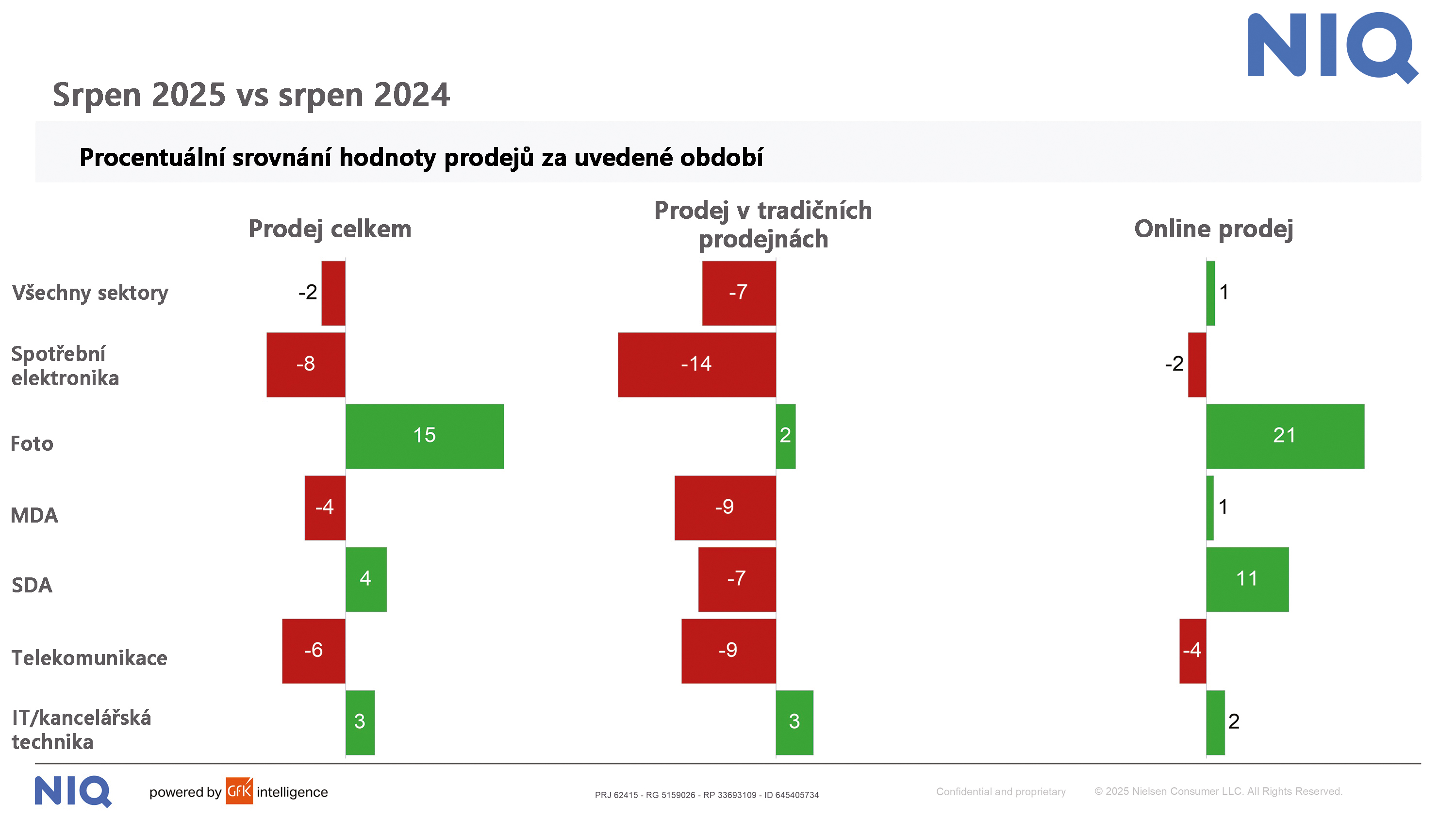 Zjevné je také to, že výrazně horší výsledky mají kamenné prodejny. Naproti tomu internet celková čísla zlepšuje, protože online prodej sám o sobě vykazuje ve většině kategorií za oba měsíce růst.