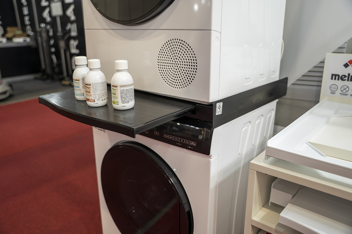 Na stánku distribuční společnosti BVZ Commerce bylo hodně pozornosti věnováno příslušenství pro pračky a sušičky. Mezi produkty od italského výrobce Meliconi vyčnívá hlavně bezprecedentně široká nabídka mezikusů včetně variant v černé barvě a posuvných podložek, umožňujících snadnou manipulaci se spotřebičem (a úklid pod ním).