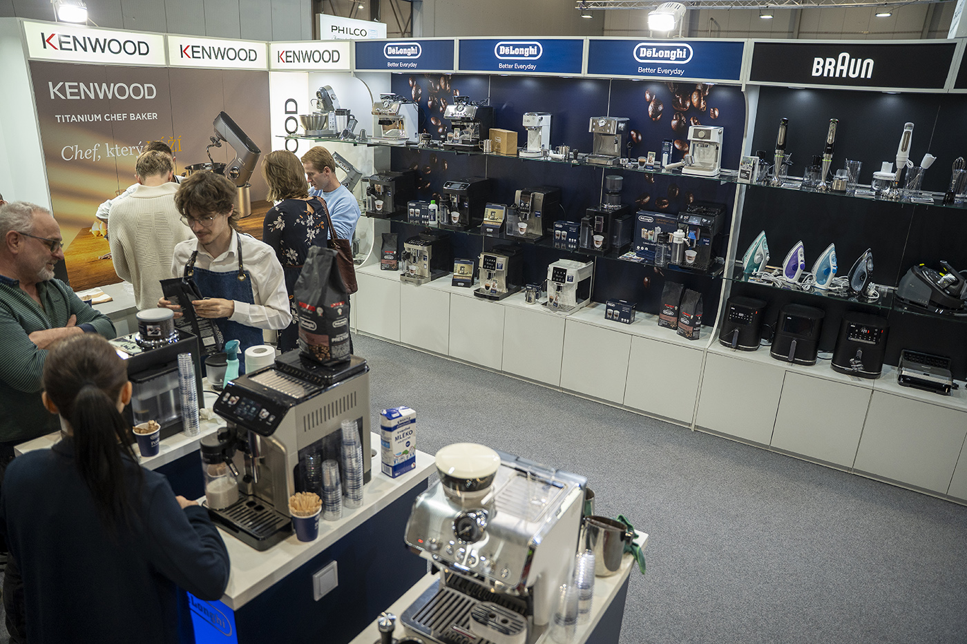 U italské značky De’Longhi se již tradičně tvořily fronty na kávu, která se na místě připravovala hned na třech strojích včetně unikátního modelu Rivelia se systémem snadné výměny zásobníků kávových zrn.