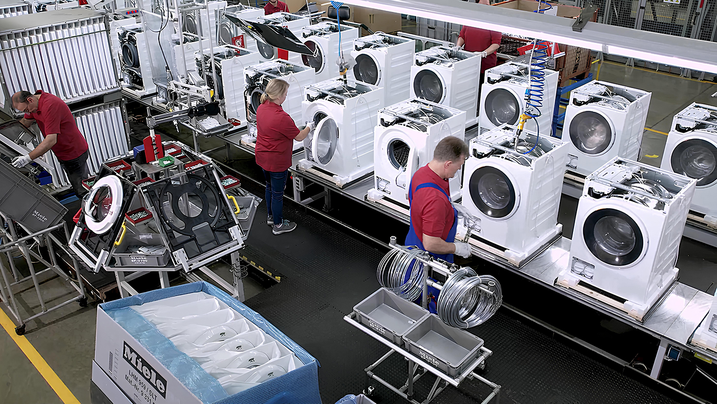 Ocel je klíčová surovina pro výrobu domácích spotřebičů. Fotografie z továrny společnosti Miele.